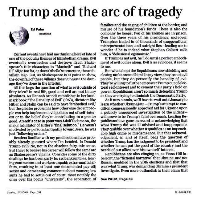 - A long time ago, my sophomore English teacher, Father William Campbell, saw something in my writing and predicted that I would someday become a newspaper columnist. He suggested the perfect title for my column--"Leaves of the Palm." Now that I have a little extra time on my hands I've decided to put Father Campbell's prediction to the test. I'm going to start using this blog site not just to reprint opinion pieces I've published elsewhere but to try to get more of my ideas and opinions out there. Feedback is welcome. To find out more about me, please check out my Web site: www.EdwardFPalm.com (Click on any of the photos below for an enlarged view.)