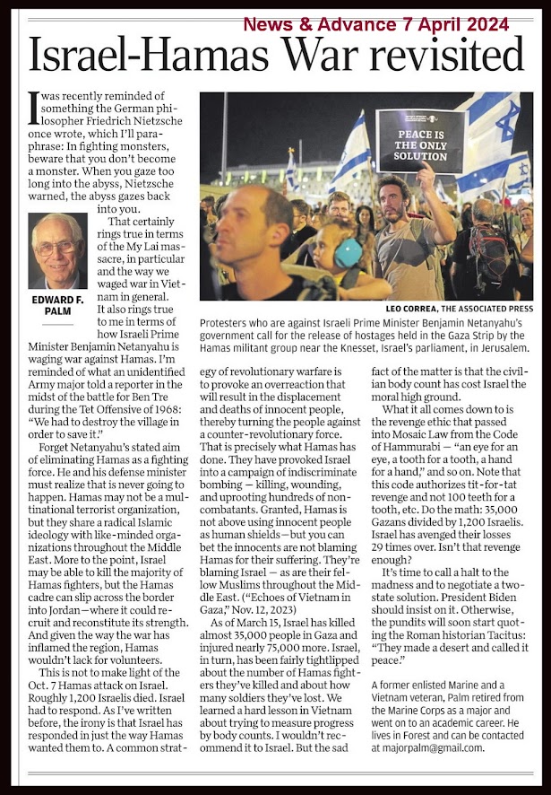- A long time ago, my sophomore English teacher, Father William Campbell, saw something in my writing and predicted that I would someday become a newspaper columnist. He suggested the perfect title for my column--"Leaves of the Palm." Now that I have a little extra time on my hands I've decided to put Father Campbell's prediction to the test. I'm going to start using this blog site not just to reprint opinion pieces I've published elsewhere but to try to get more of my ideas and opinions out there. Feedback is welcome. To find out more about me, please check out my Web site: www.EdwardFPalm.com (Click on any of the photos below for an enlarged view.)